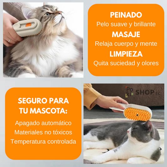 Cepillo a Vapor para Mascotas 3 en 1 – Limpieza, Masaje y Cuidado 🐾
